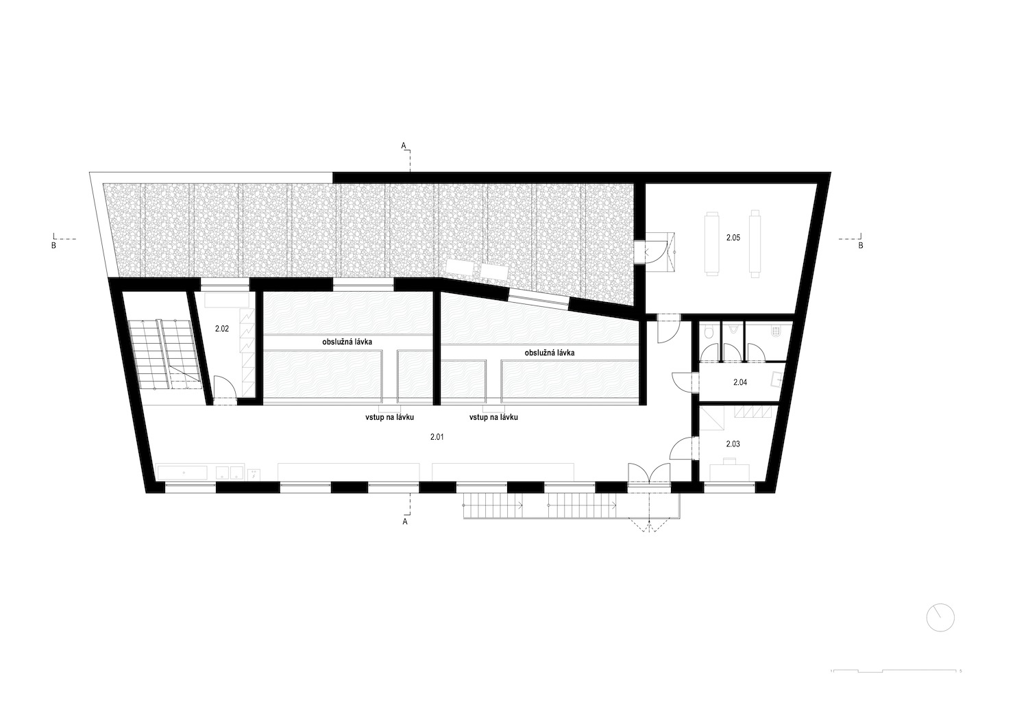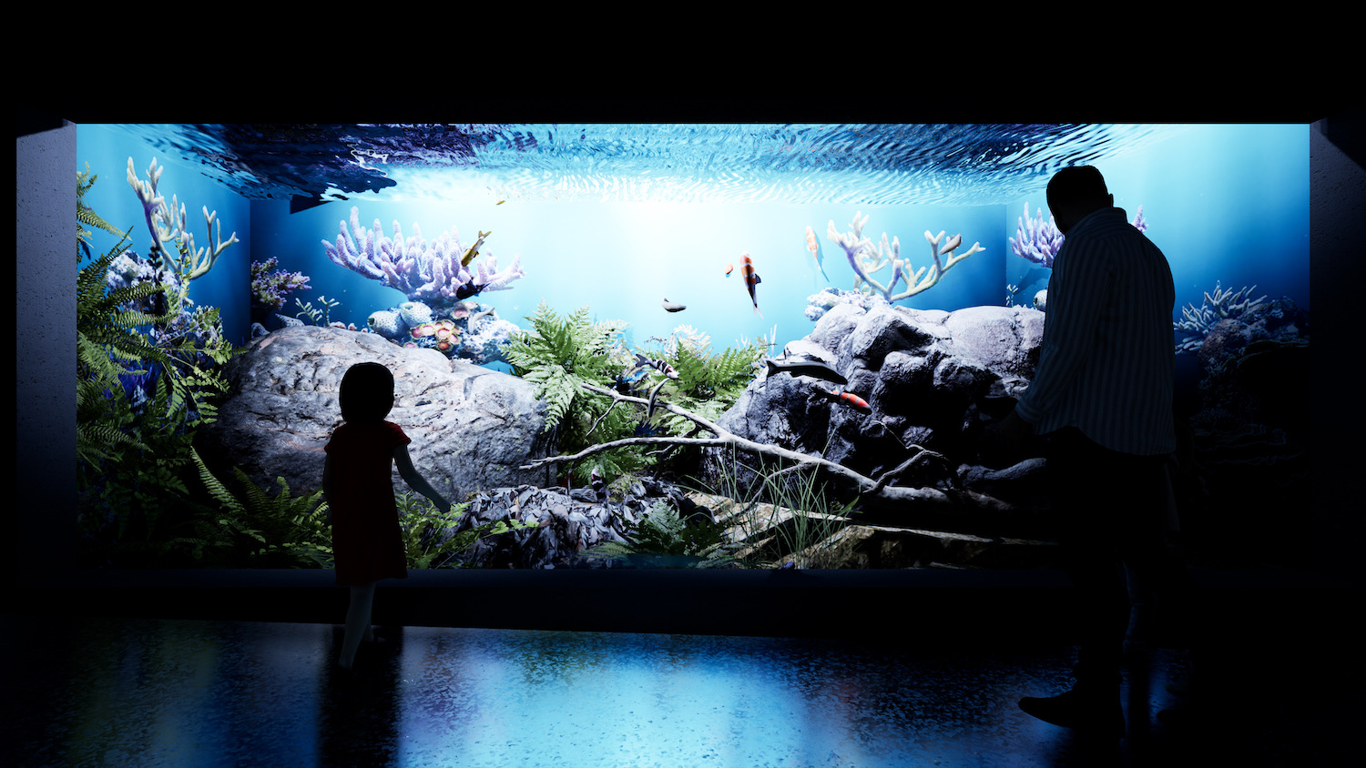 Dispozičně je objekt navržen jako dvojtrakt s vloženým traktem nádrží. Návštěvnická část sestává ze zádveří s infopanely a expoziční částí se dvěmi panoramatickými prosklenými stěnami se sladkovodní expozicí afrických jezer Tanganika a Malawi. Na protější obvodové stěně je navrženo sezení formou sedacích schodů po celé délce expozice. Na jejím počátku a konci jsou umístěny doplňkové expozice např s africkými reáliemi či drobnou suchozemskou faunou. Expozice je opět zakončena zádveřím, kde jsou rovněž umístěny infopanely. Hlavní expoziční prostor je doplněn na obvodové stěně videoprojekcí naučných materiálů a vizuálů s tématikou vody, ochrany přírody. Návštěvníci mají možnost vedle hlavního vstupu navštívit bezbariérovou toaletu s přebalovacím a kojícím koutkem.