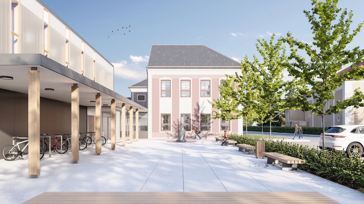 Architektura navržených objektů je vytvořena gradací tří hmot, které reagují na členění stávající školní budovy a odpovídá funkčním náležitostem nových provozů. Přístavba je orientovaná ze severozápadu stávající budovy a napojení je možné pouze na prostory chodeb, aby nedošlo k zásahu do stávajících tříd v přízemí budovy.
